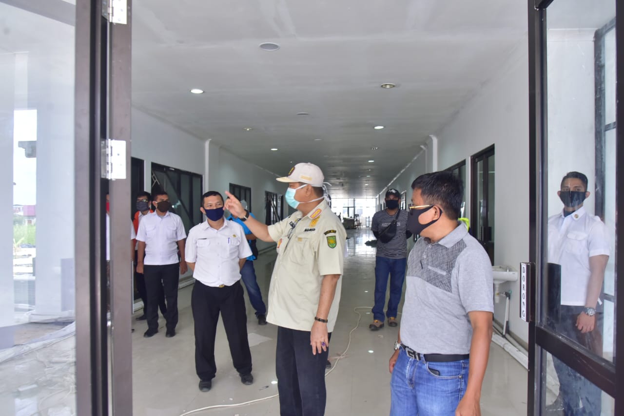 Peninjauan oleh Wakil Bupati H Syamsuddin Uti yang didampingi Sekretaris Dinas PUPR Ir Yusnaldi dan PPK serta tim kesehatan Covid-19 dengan melihat lansung setiap ruangan.