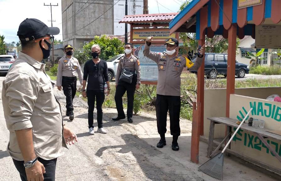 Kapolres Inhil, AKBP Indra Duaman S.IK, turun langsung melakukan pengecekan kesiapan Posko Kesehatan Posko pintu masuk keluar dan pemasangan tempat cuci tangan umum di 2 (dua)Posko serta melakukan peninjauan perencanan pemasangan plang standar operasional prosedur di pintu masuk dan keluar serta protokol Kesehatan posko kampung tangguh Tembilahan Barat.