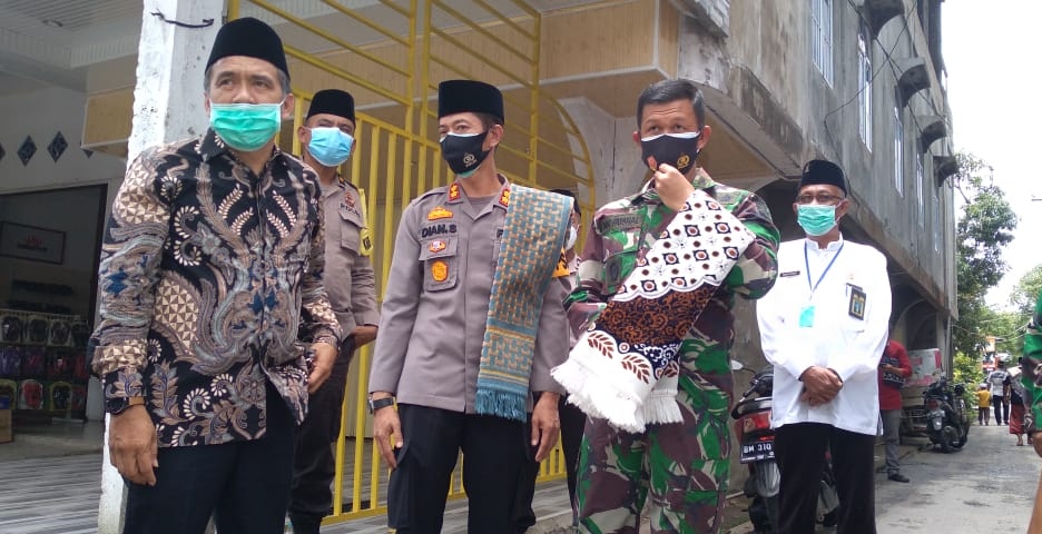 Dandim, Kapolres, dan Ketua DPRD Bersama YVB Berikan Masker di Mesjid Al- Jama’ah