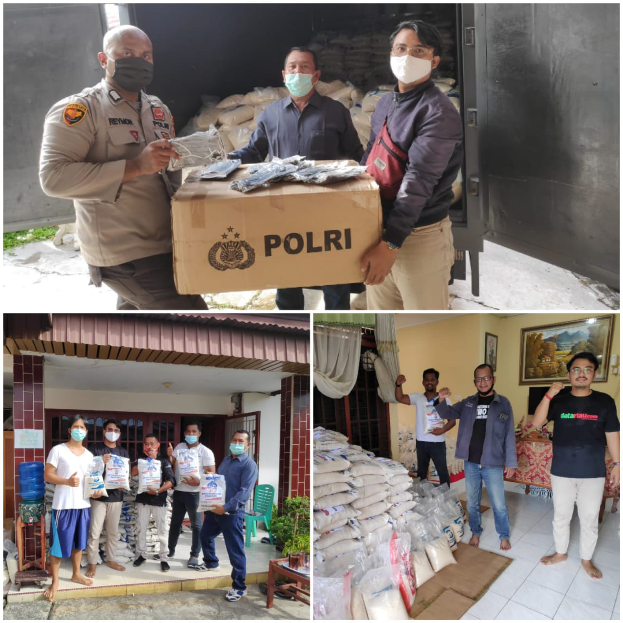 Dimana dalam hal ini, Kapolda Riau Irjen Agung melalui Karolog Kombes Pol Munggaran memberi bantuan 3 Ton beras yang sudah dipisah menjadi 5 Kg di jalan Dahlia, Gang Irian, Kecamatan Payung Sekaki kota Pekanbaru.