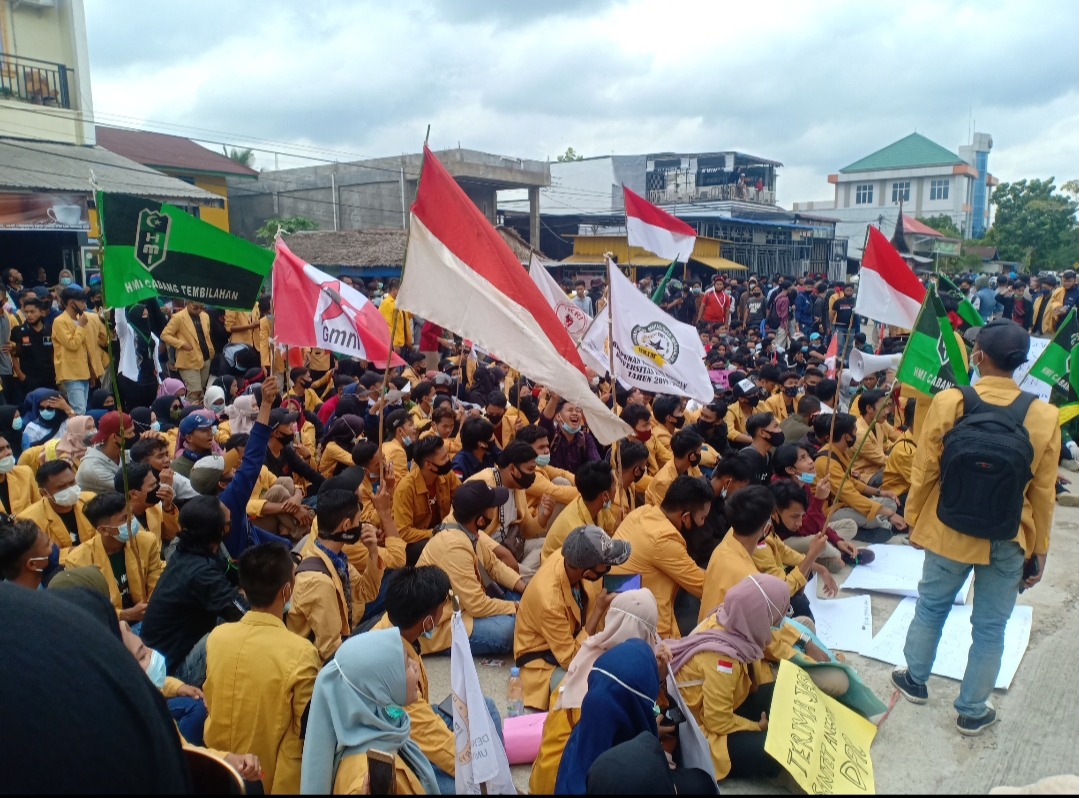 Aksi Demo Mahasiswa Tolak UU Omnibus Law Cipta Kerja di Kantor DPRD Inhil