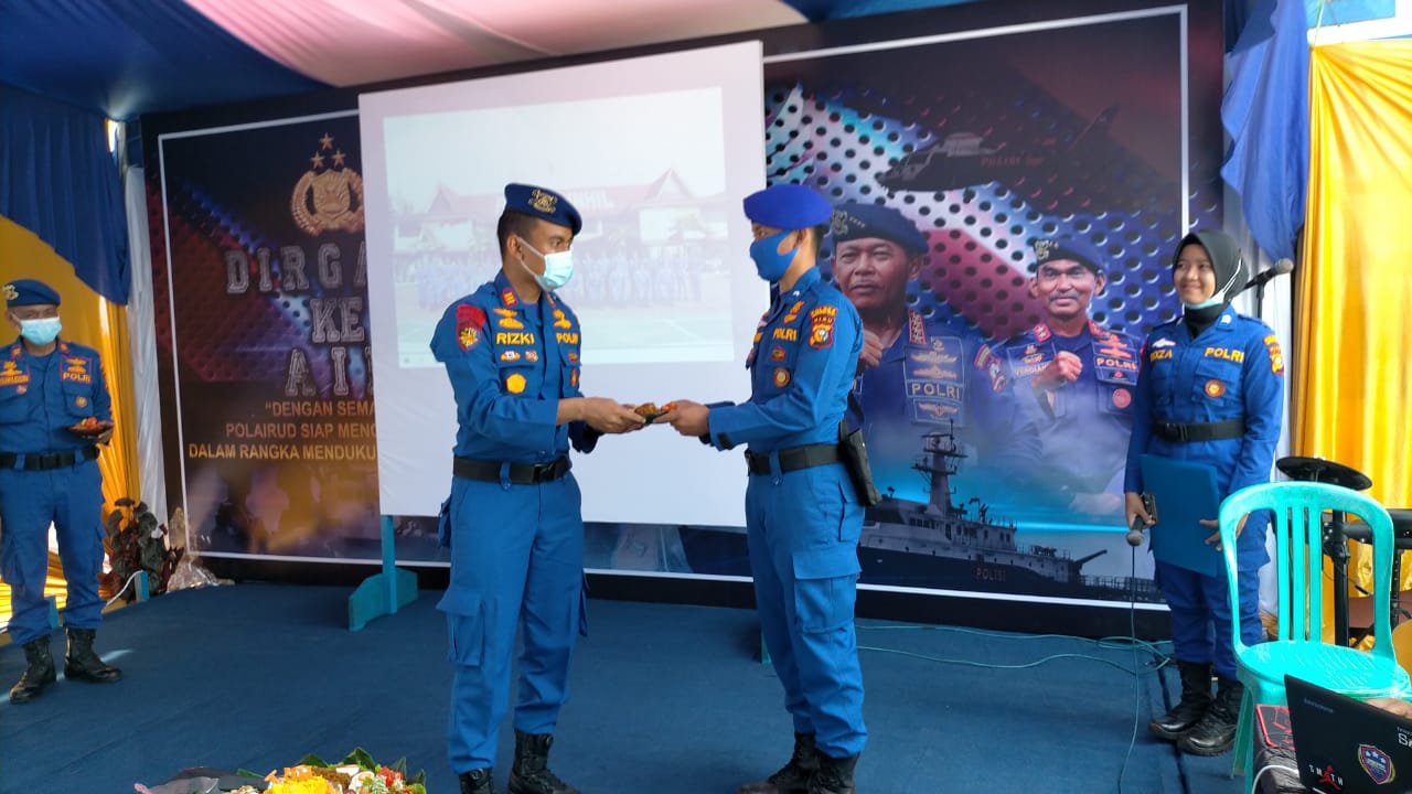 Pada HUT Polairud Ke-70 Tahun 2020 Kapolres memberikan potongan Tumpeng kepada personil tertua dan termuda Sat Polair Polres Inhil sembari diselingi dengan penayangan Selayang Pandang Sat Polair.