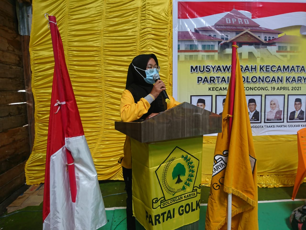 Sementara dalam kesempatan itu, Camat Concong, Hamsari mengucapkan selamat atas terselenggaranya gelaran Muscam Partai Golkar di Kecamatan Concong. Selaku Pembina Partai Politik dan Organisasi Sosial Kemasyarakatan, Dirinya berkomitmen untuk senantiasa melakukan yang terbaik sebagaimana mestinya.