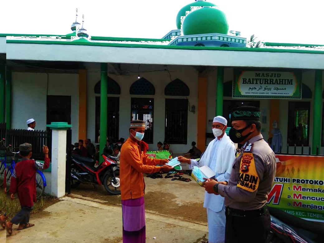 Pemerintah desa (Pemdes), Babinkamtibmas dan pengurus mesjid dari awal perencanaan sholat Idul Fitri telah mempersiapkan protokol kesehatan.