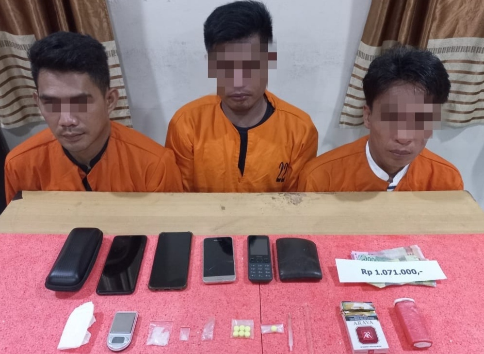 Infoinhil.com – Sat Narkoba Polres Inhil berhasil menangkap 3 (tiga) orang laki-laki diduga pelaku tindak pidana narkotika jenis shabu dan extacy, pada Rabu (16/6/2021) malam.