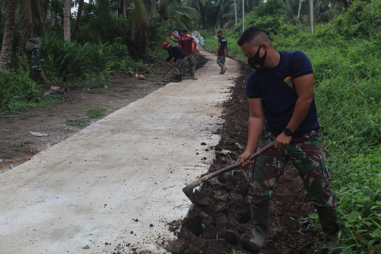 “Selain itu, untuk mengisi kekosongan waktu, satgas TMMD bersama masyarakat melakukan gotong royong penimbunan tepi kanan kiri jalan dengan menggunakan tanah disamping jalan agar jalan terlihat rapi dan tidak membahayakan pengguna jalan nantinya.