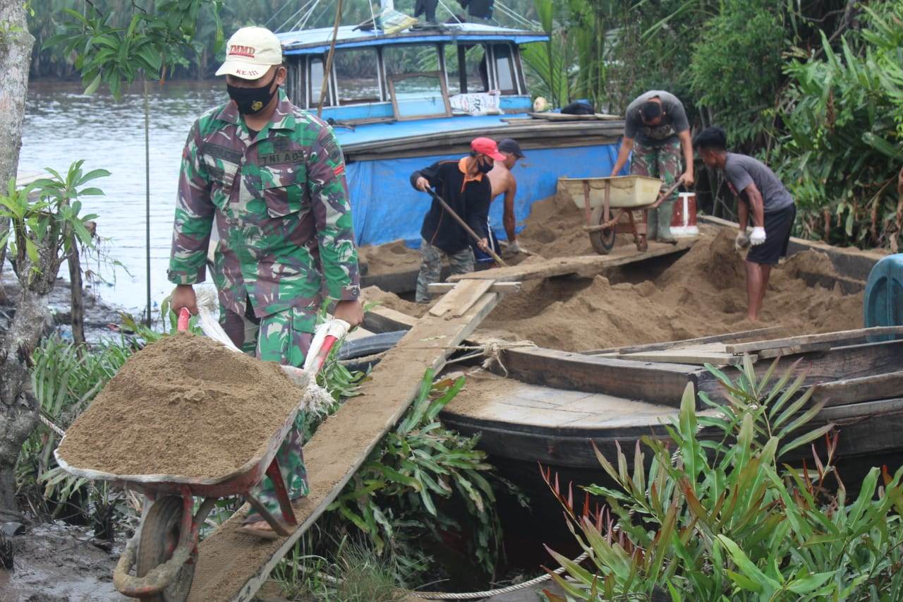 Infoinhil.com – Indragiri Hilir, – Satgas TMMD ke 111 Kodim 0314/lnhil yang mengerjakan sasaran fisik jalan penghubung Desa Terusan Beringin Jaya denga Desa Teluk Bunian hari ini masih terhenti karena kekurangan bahan matrial berupa pasir yang baru sampai tadi malam.