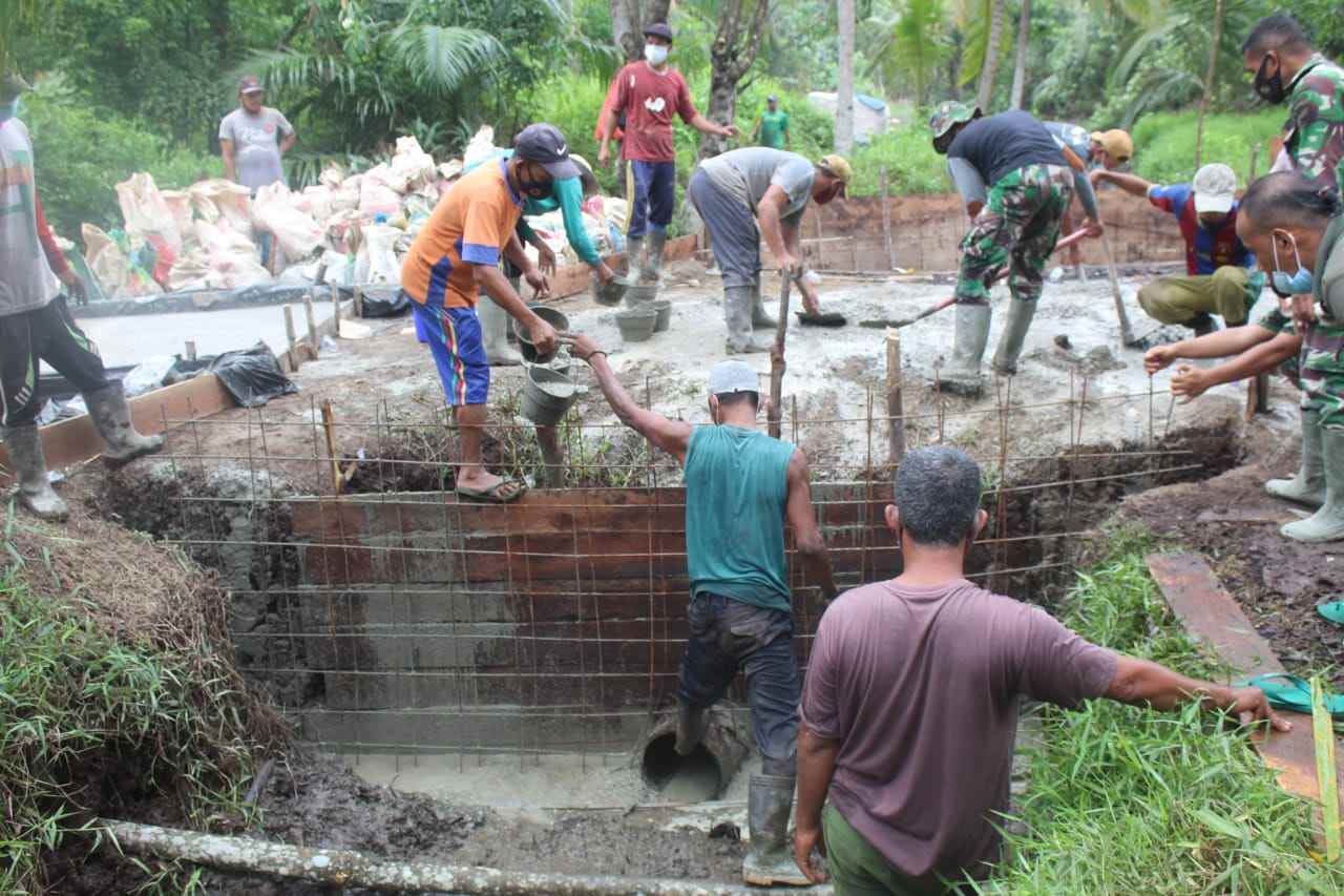 Indragiri Hilir,- Guna menunjang kelancaran pembangunan jalan Yakub 2 yang merupakan sasaran fisik TMMD ke 111 Kodim 0314/lnhil, pembangunan box Cafer yang sempat tertunda hari ini mulai di kerjakan kembali, Minggu (27/06/2021).