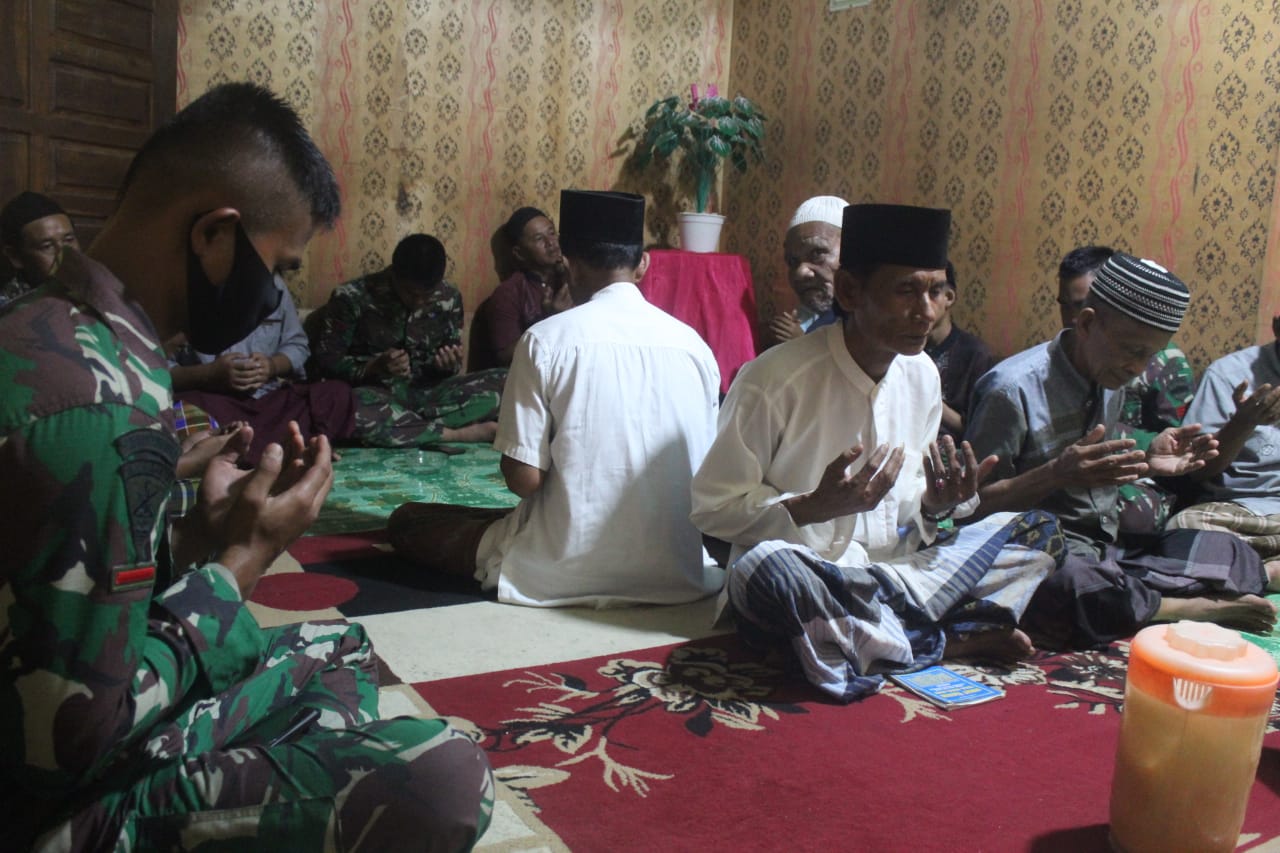 Infoinhil.com – Indragiri Hilir, – Satgas TMMD ke 111 laksanakan komsos hadiri undangan haul atau do’a bersama untuk mengenang dan mendo’akan almarhumah Siti Fatimah di rumah bapak Ramadhan Sahada, RT. 01, RW. 01, Dusun Maju Jaya Desa Teluk Bunian, Kecamatan Pelangiran, Kabupaten Inhil, Jum’at (02/07/2021).