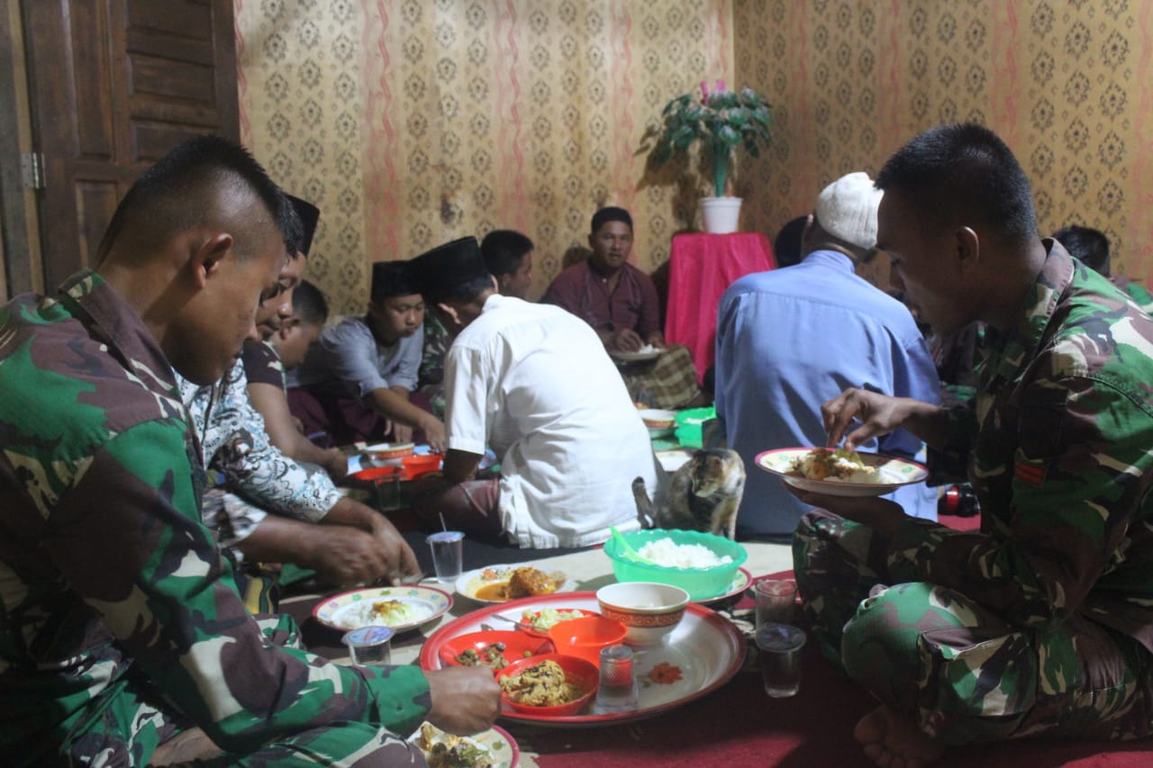 Dalam acara makan bersama ini tampak sekali kedekatan anggota Satgas TMMD bersama masyarakat. Semua berbaur tanpa memandang status pangkat, jabatan, tua ataupun muda satu nampan berempat atau bertiga sesuai adat budaya Melayu.