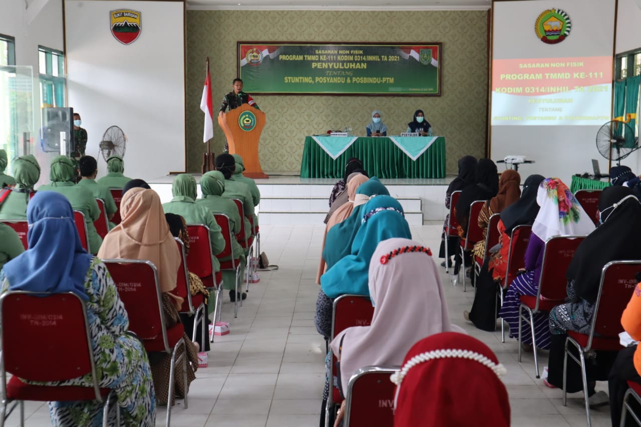 Infoinhil.com – Indragiri Hilir,- Dalam rangka TNI Manunggal Membangun Desa (TMMD) Ke-111 Kodim 0314/Inhil digelar penyuluhan tentang Stunting Posyandu dan Posbindu-PTM.