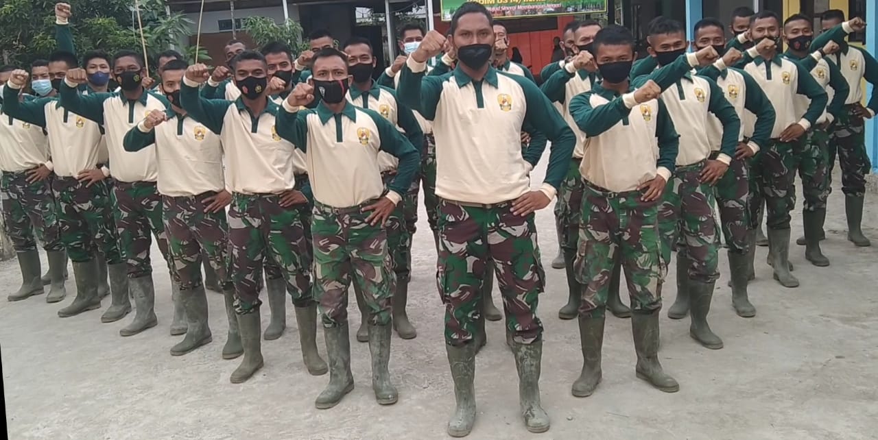 Infoinhil.com – Indragiri Hilir, – Disela sela kegiatannya melaksanakan semenisasi jalan di dua sasaran fisik, Satgas TMMD ke 111 Kodim 0314/lnhil tidak lupa memberikan ucapan selamat ulang Bhayangkara ke 75 tahun di depan Posko TMMD ke 111 Kodim 0314/lnhil, Desa Teluk Bunian Kecamatan Pelangiran, Kamis (01/07/2021).