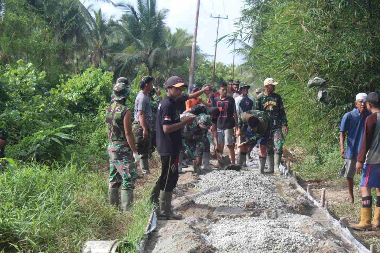 Infoinhil.com – Indragiri Hilir, – Satgas TMMD ke 111 Kodim 0314/lnhil terus menggeber pengerjaan sasaran fisik semenisasi jalan Yakub 2 yang merupakan jalan penghubung antara Desa Teluk Bunian dengan kota Kecamatan Pelangiran, Sabtu (03/07/2021).