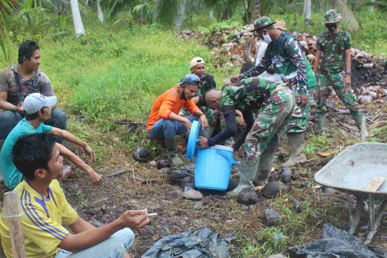 Infoinhil.com – Indragiri Hilir, Disela sela kegiatannya bergotong royong melaksanakan semenisasi jalan di jalan penghubung Desa Teluk Bunian dengan kota Kecamatan, Satgas TMMD ke 111 Kodim 0314/lnhil bersama masyarakat melaksanakan istirahat siang.