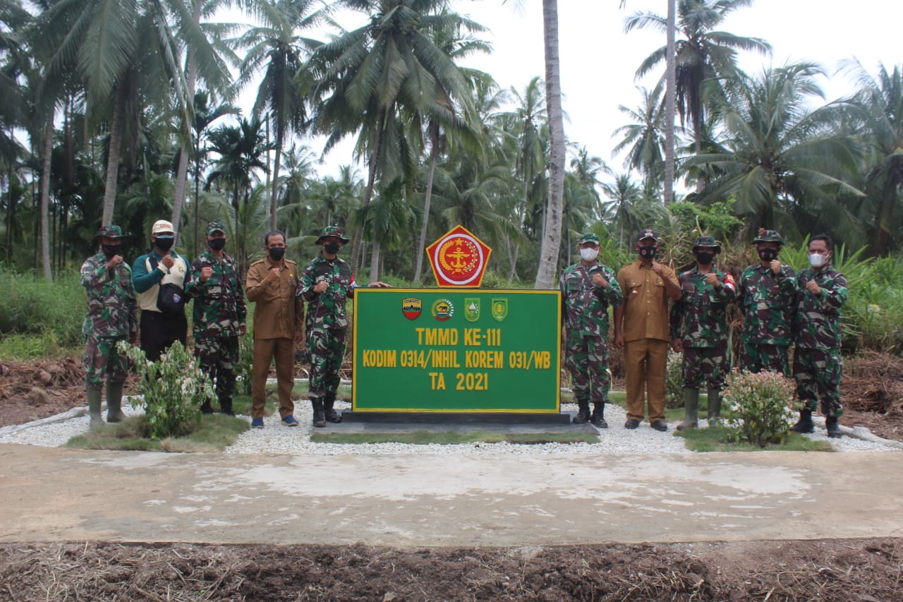 Sesampainya di Posko TMMD Dansatgas langsung mengecek ke dua titik sasaran fisik TMMD yaitu jalan Yakub ll atau jalan terusan dari Desa Teluk Bunian menuju ke kota Kecamatan dan jalan Bukit Barisan yang merupakan jalan penghubung Desa Terusan Beringin Jaya dengan Desa Teluk Bunian. Dimulai dari titik Nol sampai ke titik akhir pembangunan semenisasi jalan.