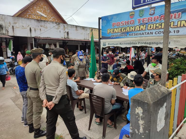 Infoinhil.com – Tim Yustisi penanganan protokol kesehatan Kabupaten Indragiri Hilir melaksanakan operasi yustisi dan sidang ditempat di Pasar Pagi Jalan Baharuddin Yusuf Tembilahan, Kecamatan Tembilahan, Rabu (3/11/2021).