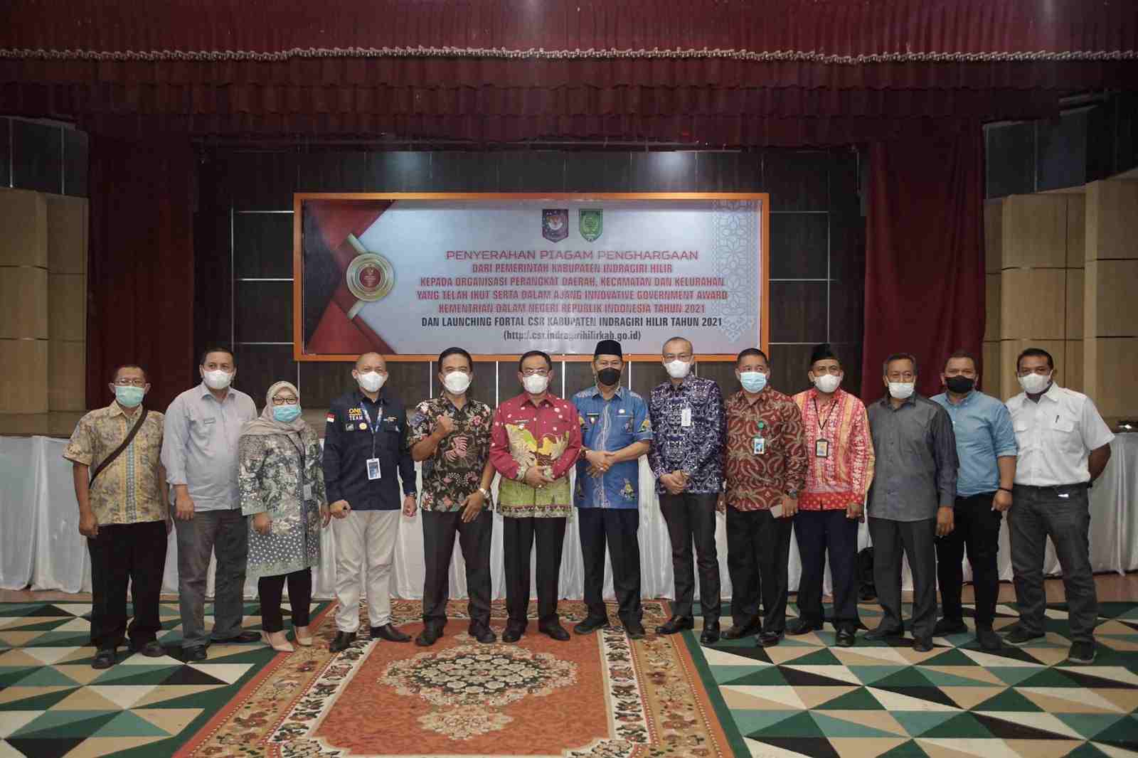Infoinhil.com – Sebagai peringkat 7 Kabupaten Terinovatif dari 415 Kabupaten se-Indonesia, Bupati HM.Wardan yang didampingi Wakil Bupati H.Syamsuddin Uti menyampaikan ucapan terima kasih sekaligus menyerahkan piagam penghargaan kepada Organisasi Perangkat Daerah (OPD) dan Camat dilingkungan Pemkab Inhil, Kamis (30/12/2021).
