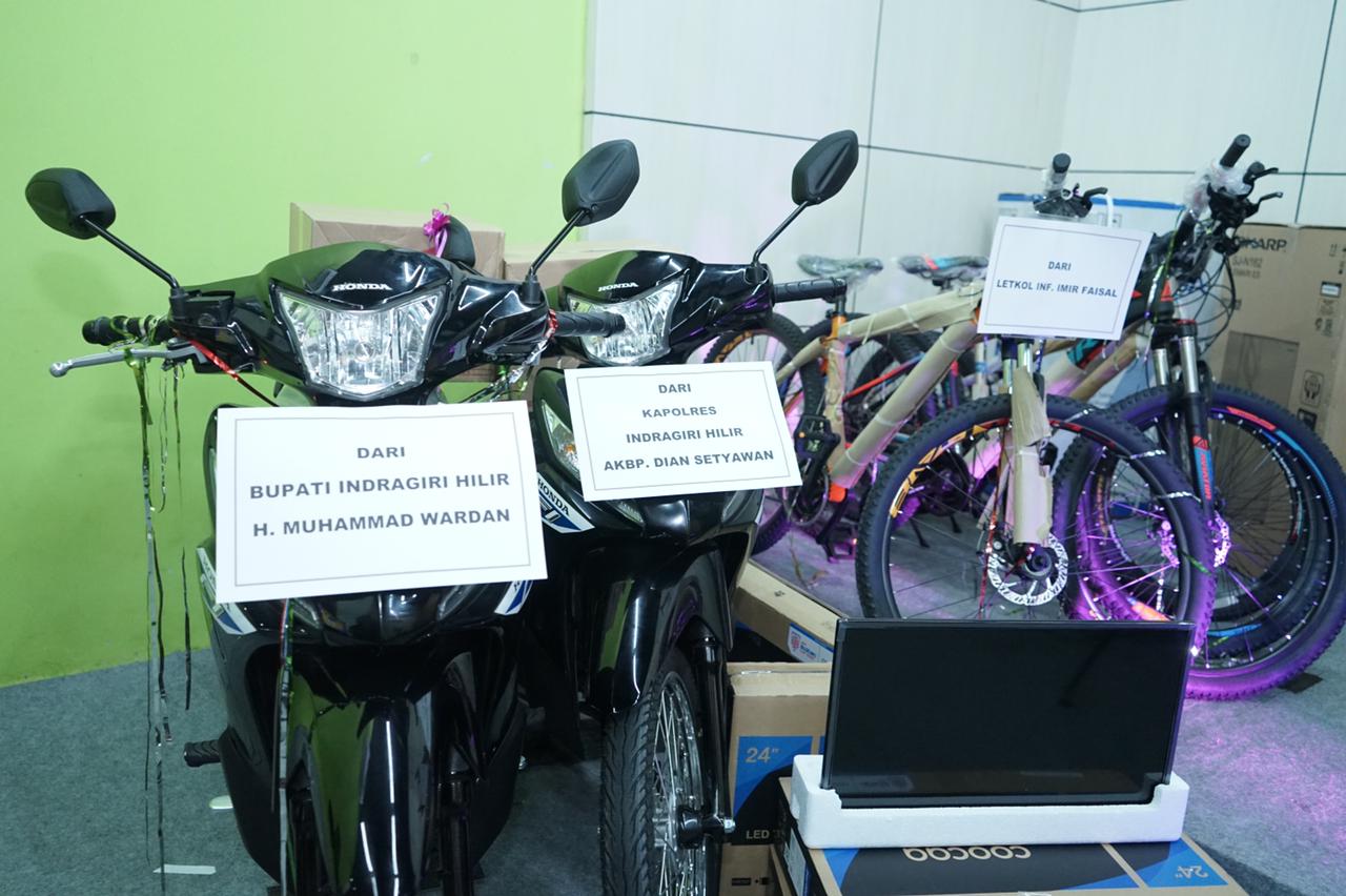 Selain hadiah utama sepeda motor, Bupati Inhil bersama Forkopimda juga membagikan hadiah hiburan lainnya bagi masyarakat yang nomor NIK nya keluar sebagai penerima hadiah yang telah dimulai sejak tanggal 27 Desember 2021 lalu.