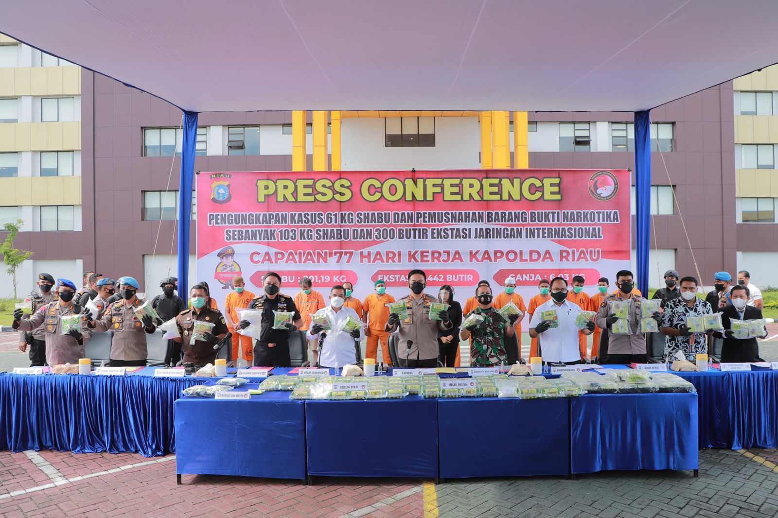 Infoinhil.com – Wakil Gubernur Riau Edi Natar Nasution memuji gerak cepat Kapolda Irjen Pol Mohammad Iqbal dalam pemberantasan peredaran Narkotika. Dalam masa jabatannya yang baru 77 hari, M Iqbal dinilai cekatan lantaran telah menggagalkan peredaran 201,19 Kilogram Sabu, 1.442 butir pil Ekstasi dan 6,03 Kilogram Ganja di Negeri Lancang Kuning.