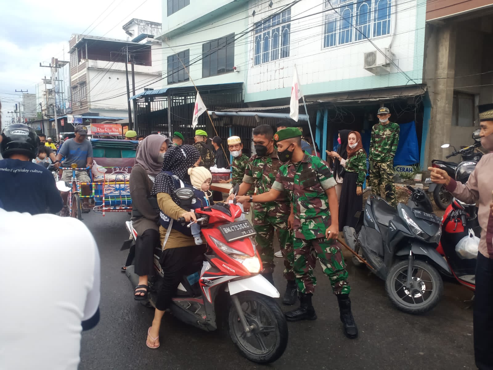 Infoinhil.com – Tembilahan, Di bulan suci Ramadhan bulan yang penuh berkah. Komandan kodim 0314/Inhil bersinergi dengan Pemuda Panca Marga (PPM) Indragiri Hilir membagikan takjil gratis kepada masyarakat yang melintas di jalan H Said, kelurahan Tembilahan kota, kecamatan Tembilahan, kabupaten Indragiri Hilir. Senin (25/4/2022) sore.