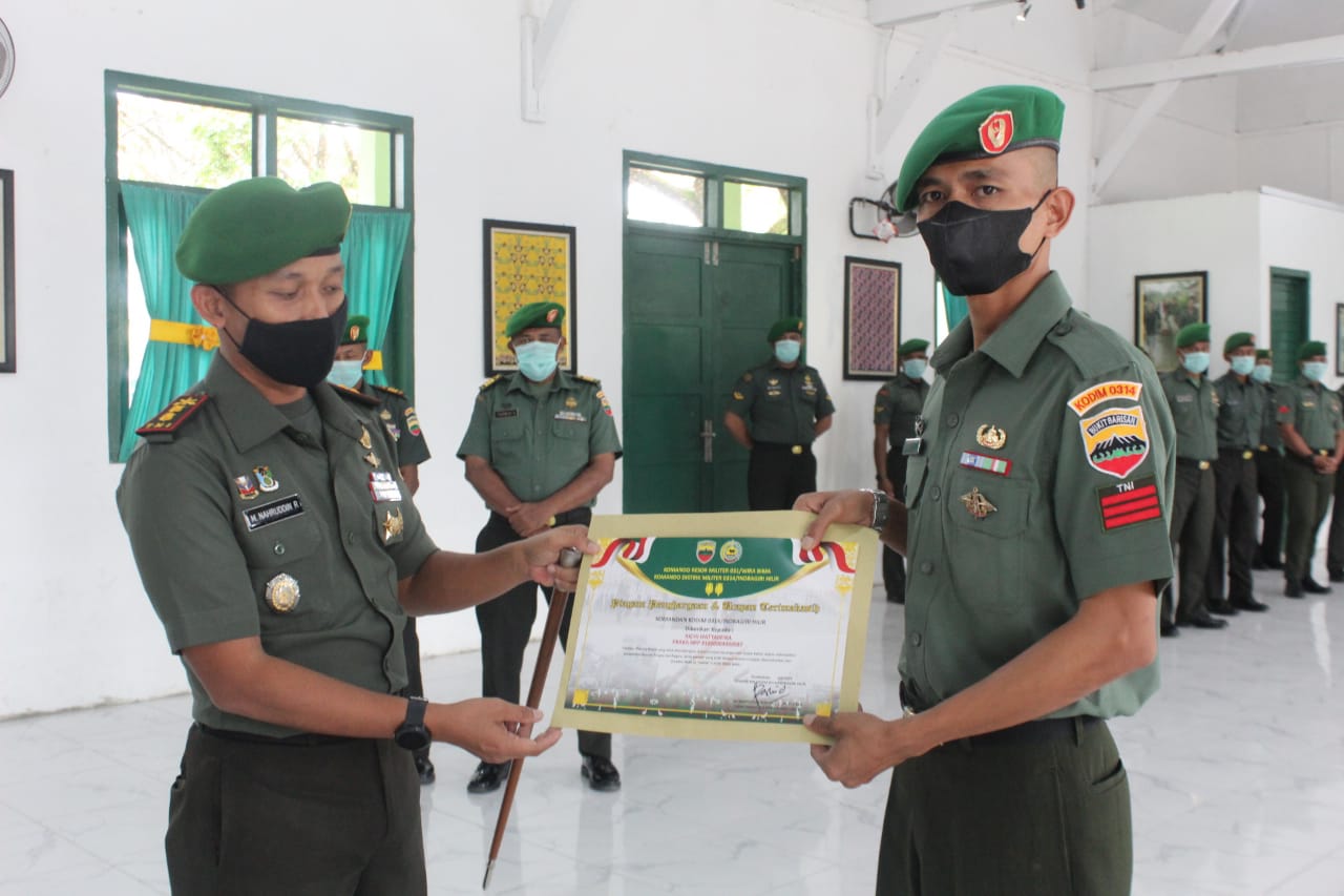 Dalam tradisi korp raport, Dandim melepas 1 Anggota Kodim 0314/Inhil yaitu Praka Richi Hattawira ke tempat yang baru Kodim 0313/Kampar Korem 031/Wira Bima.