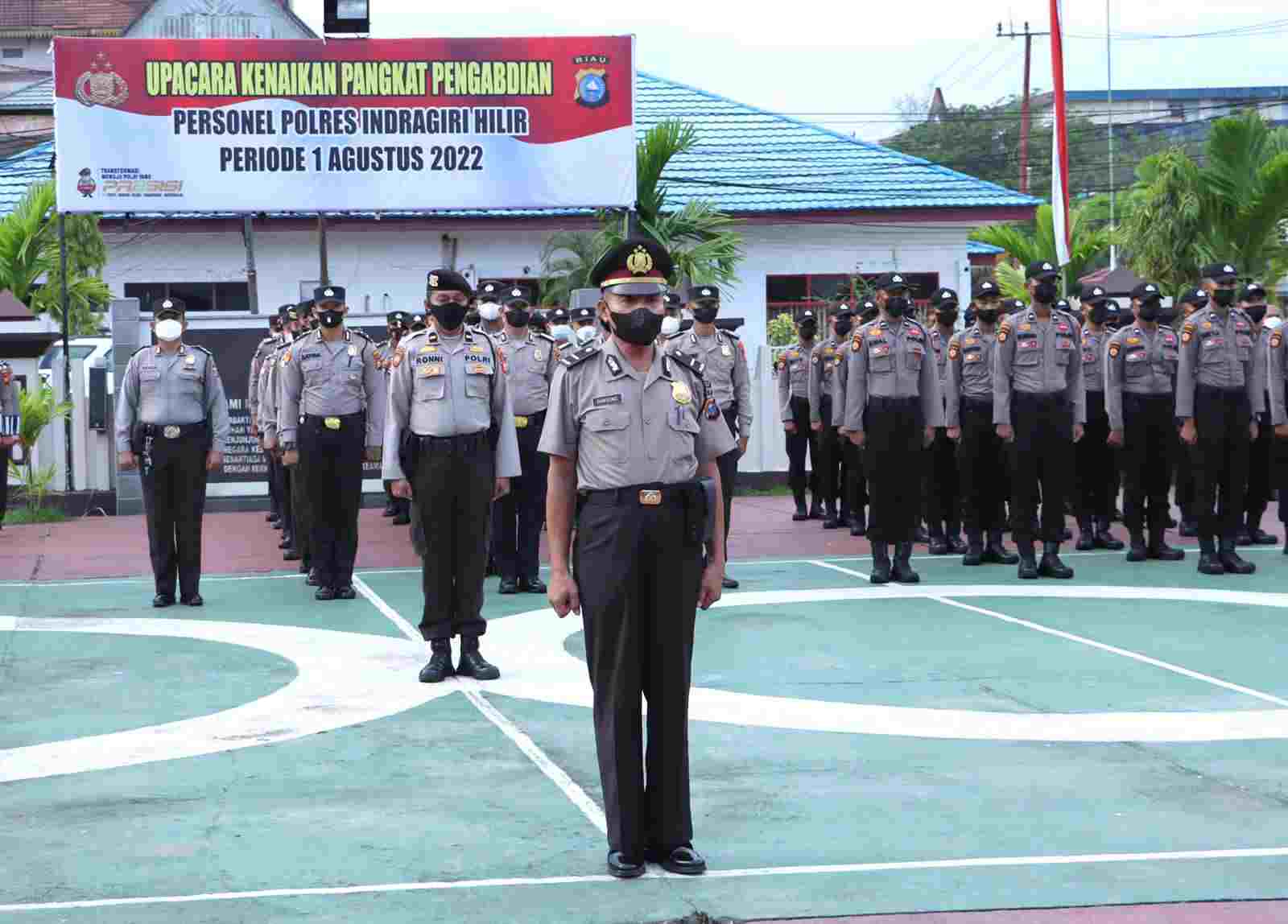 Upacara dipimpin Kapolres Inhil AKBP Norhayat SIK di Lapangan Mapolres Inhil Senin (1/8/22) pagi.