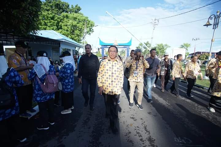 Infoinhil.com – Bupati Inhil HM. Wardan menghadiri pembukaan Pekan Nasional Tani Nelayan (Penas) XVI tahun 2023 di lapangan Lanud Sultan Syahril Padang Sumatera Barat, Sabtu (10/06/2023).