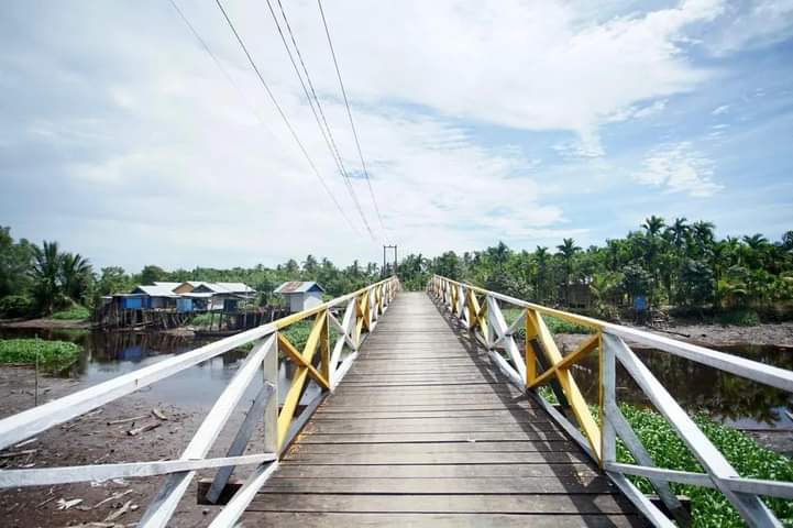 Jembatan tersebut memiliki panjang 71 meter dengan lebar 2 meter dengan pengejaran swakelola oleh Dinas PUTR Inhil.