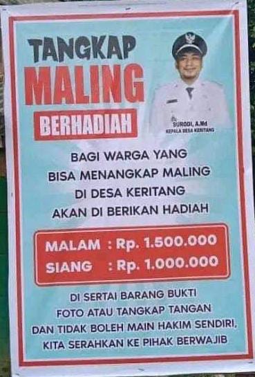 Sayembara tersebut diposting langsung oleh akun Facebook pribadi milik Kepala Desa Keritang, Surodi Jaya Kusuma. Hal itu dituangkan dalam bentuk bener dengan tulisan “Tangkap Maling Berhadiah, bagi warga yang bisa menangkap maling di Desa Keritang akan di berikan hadiah MALAM: Rp. 1.500.000, SIANG: Rp. 1.000.000 di sertai barang bukti foto atau tangkap tangan dan tidak boleh main hakim sendiri, kita serahkan ke pihak berwajib”.