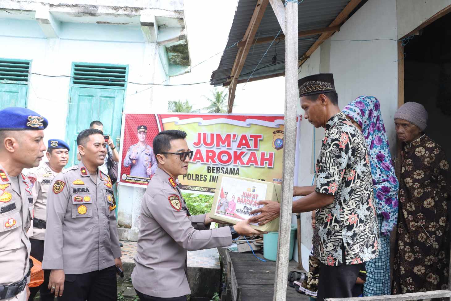 Pak Arbain mengalami kebutaan dengan kondisi ekonomi yang lemah perlu uluran tangan. Kegiatan sosial ini merupakan salah satu program Polres Inhil dalam tajuk Jum’at Berkah.