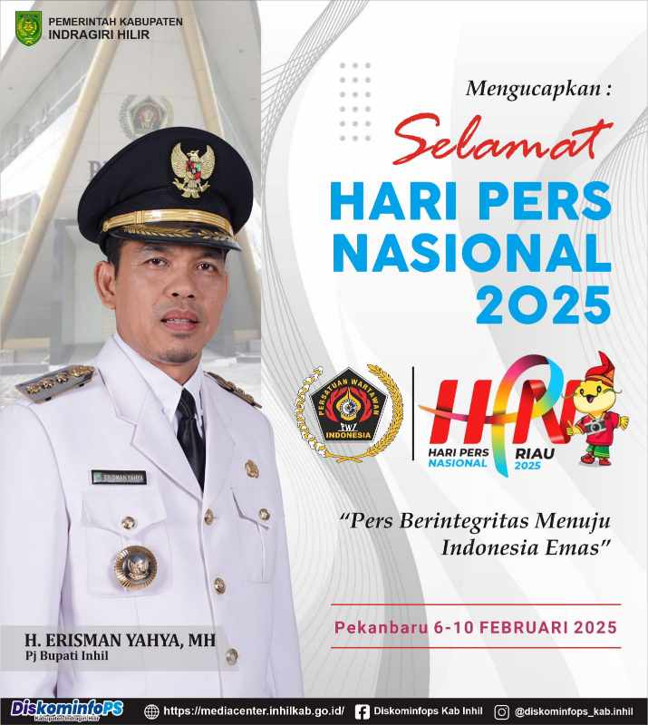 Infoinhil.com – Inhil, Penjabat (Pj) Bupati Indragiri Hilir, H. Erisman Yahya, MH, menyampaikan ucapan selamat memperingati Hari Pers Nasional (HPN) 2025 yang diselenggarakan di Pekanbaru, Riau, pada 6-10 Februari 2025.