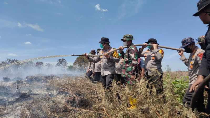 Kolaborasi Polisi-TNI-BPBD Berjibaku Padamkan Karhutla di Rokan Hilir