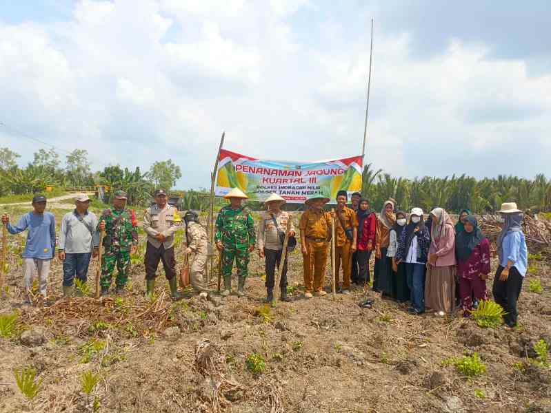 Polsek Tanah Merah menunjukkan komitmennya dalam mendukung program ketahanan pangan nasional melalui keterlibatannya dalam kegiatan penanaman jagung di Dusun II, Desa Selat Nama, Kecamatan Tanah Merah, Kabupaten Indragiri Hilir.