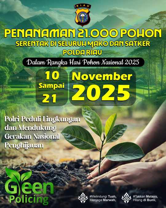 Kapolda Riau Irjen Herry Heryawan menegaskan, gerakan penanaman pohon secara besar-besaran ini merupakan langkah nyata kepolisian dalam menjaga kelestarian lingkungan dan menanamkan nilai Green Policing sebagai budaya kerja di tubuh Polri.