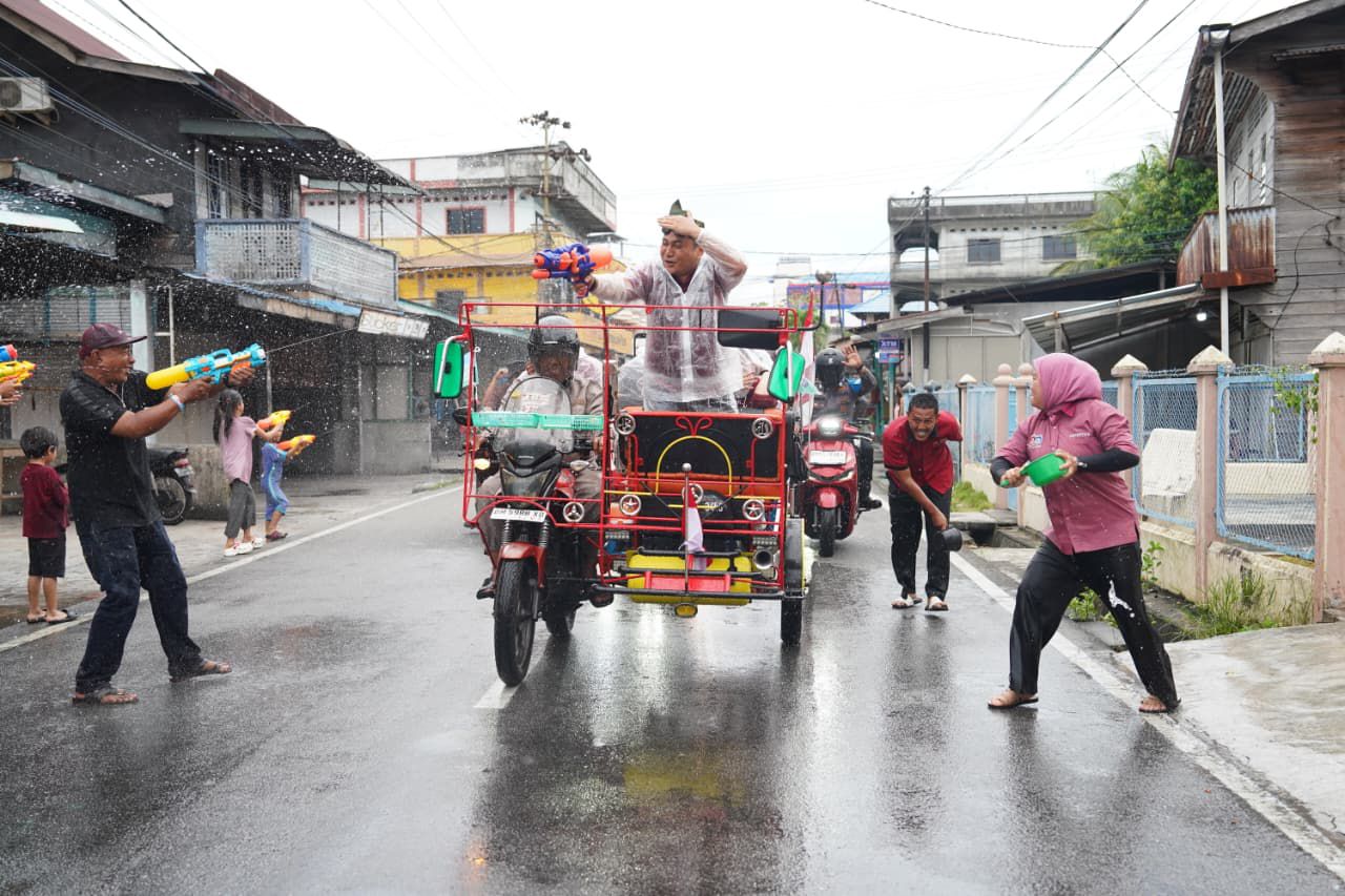 Peserta saling ‘serang’ dengan air yang dimasukkan ke dalam ember ataupun menggunakan pistol air. Kapolda Riau Irjen Pol Herry Heryawan dan Wakapolda Brigjen Hengki Haryadi ikut hadir memeriahkan Cian Cui.