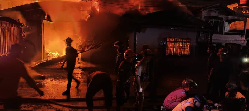Kebakaran yang diduga dipicu arus pendek listrik itu dengan cepat membesar dan melahap bangunan yang sebagian besar terbuat dari kayu. Api yang berkobar hebat sempat membuat warga sekitar panik dan berupaya menyelamatkan barang-barang dari lokasi kejadian.